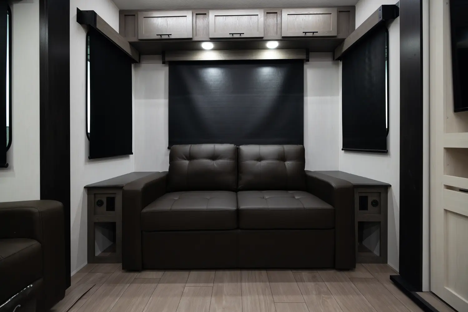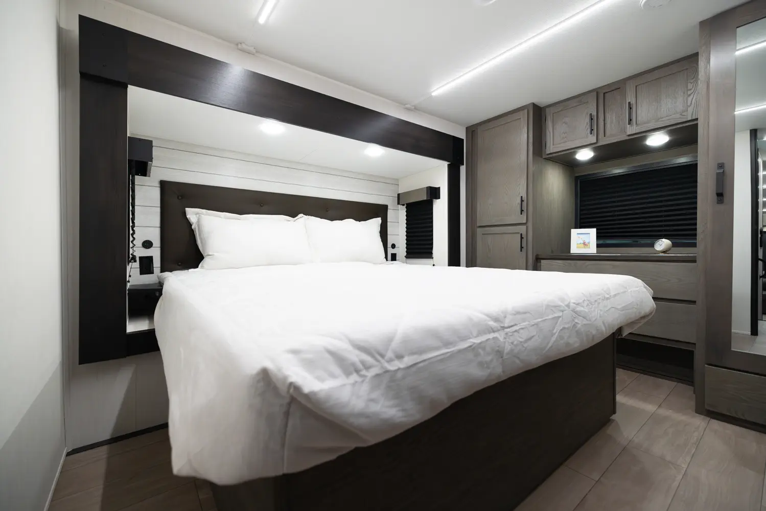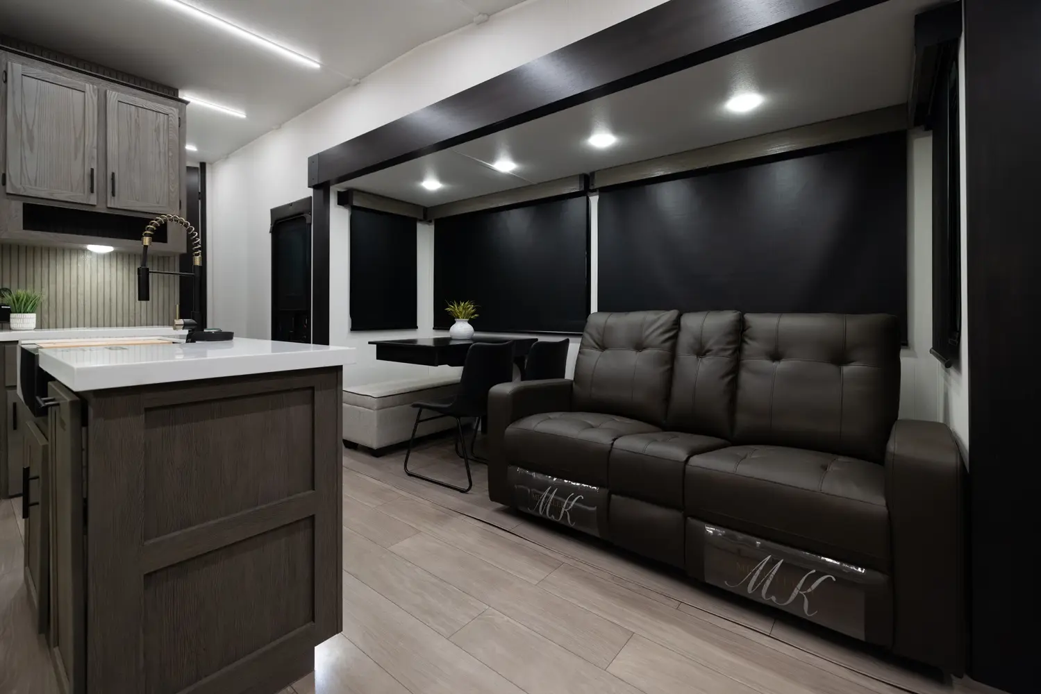 The Arctic Wolf 3250SUITE is perfect for couples and solo travelers alike with a spacious open concept design. The rear living room is flanked by big windows for natural light and the entertainment center doubles as a hidden pantry. In the modern island kitchen, you'll find two 10 cu. ft. refrigerators, 30" microwave, oven and a spacious dinette. Up front is a king size bed, full bathroom, sun bench and lots of great wardrobe space.