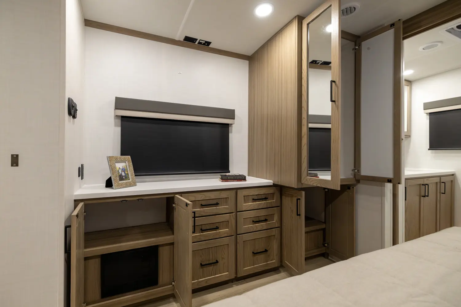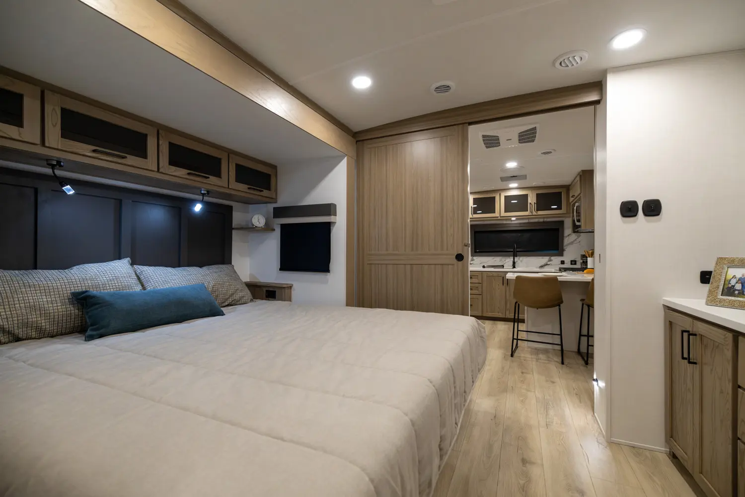 EXQUISITE, EXPANSIVE INTERIORS AS THE NORM. WELCOME TO THE CLASSIC SERIES, REDEFINING THE CAMPING EXPERIENCE THROUGH AN ARRAY OF REMARKABLE FEATURES. With its inviting open floorplans and ample storage capacity, there's room for those cherished guests or family you wish to bring along. As you nestle into the embrace of a plush king or queen sized bed, the restlessness of your adventures fade away. Through its efficient layout and panoramic windows, the classic travel trailers offer you an opportunity to luxuriate in your surroundings, all while enjoying the comfort of your serene interior.