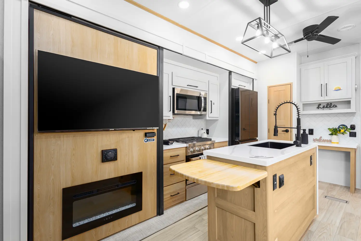 The 4002FB is a double queen bed and loft coach. With 4 slideouts and a double bunk loft, this floorplan has enough sleeping space for whoever wants to tag along. Rear entry into the 2nd full bath will offer full amenities without cluttering or using the master bath. The island kitchen and theater seating provide a great space to entertain and unwind. The 4002FB is extremely versatile, utilizing the extra bedroom or loft for storage when the sleeping space isn't needed.