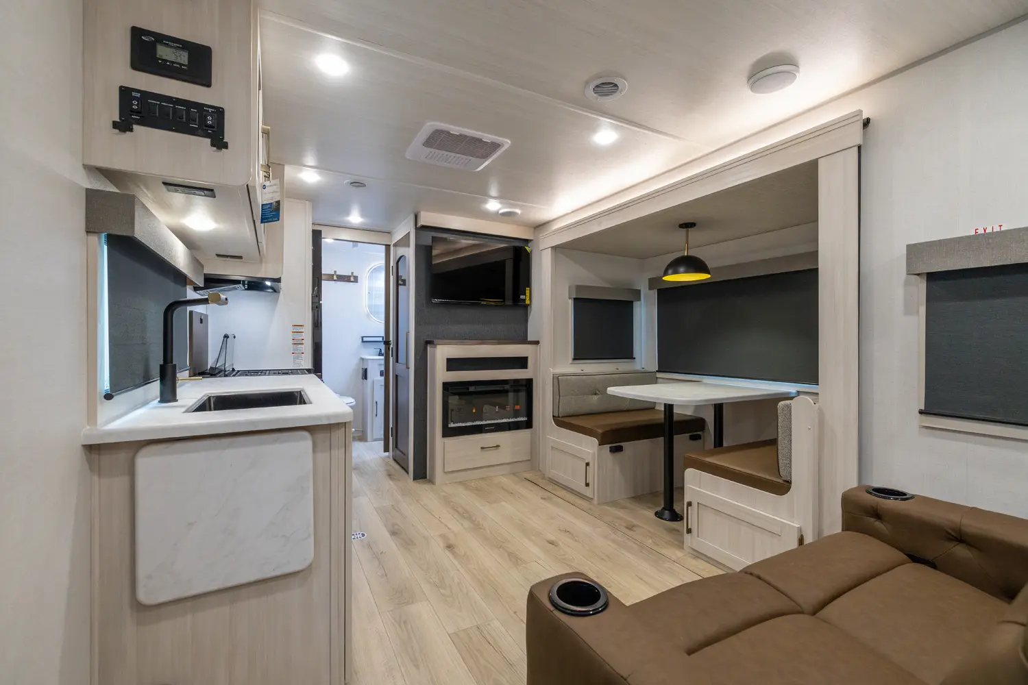 Sleeps up to 4-6. Need tow vehicle rated at 5800 lbs. or more. This self contained Destination camper is very intelligently laid out and spacious, featuring; a deep dinette slide-out, with jackknife sofa or optional Exclusive TSS tucked perfectly on the bedroom privacy wall. The washroom has tremendous storage as does the walk in pantry! And if outside is calling, the 252RBLE has our outside cookhouse kitchen, second to none!