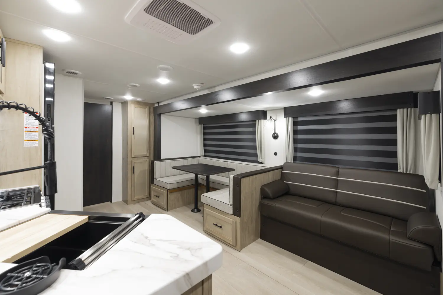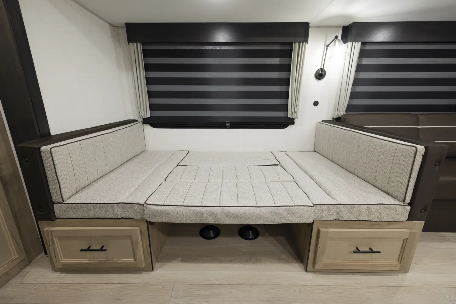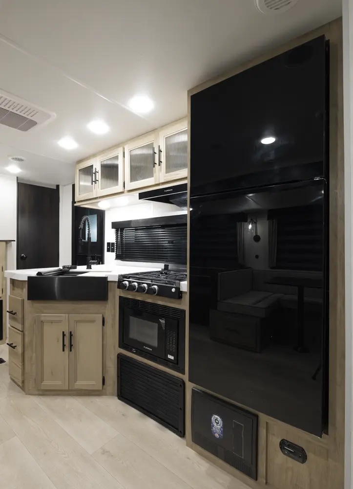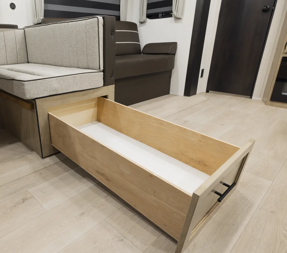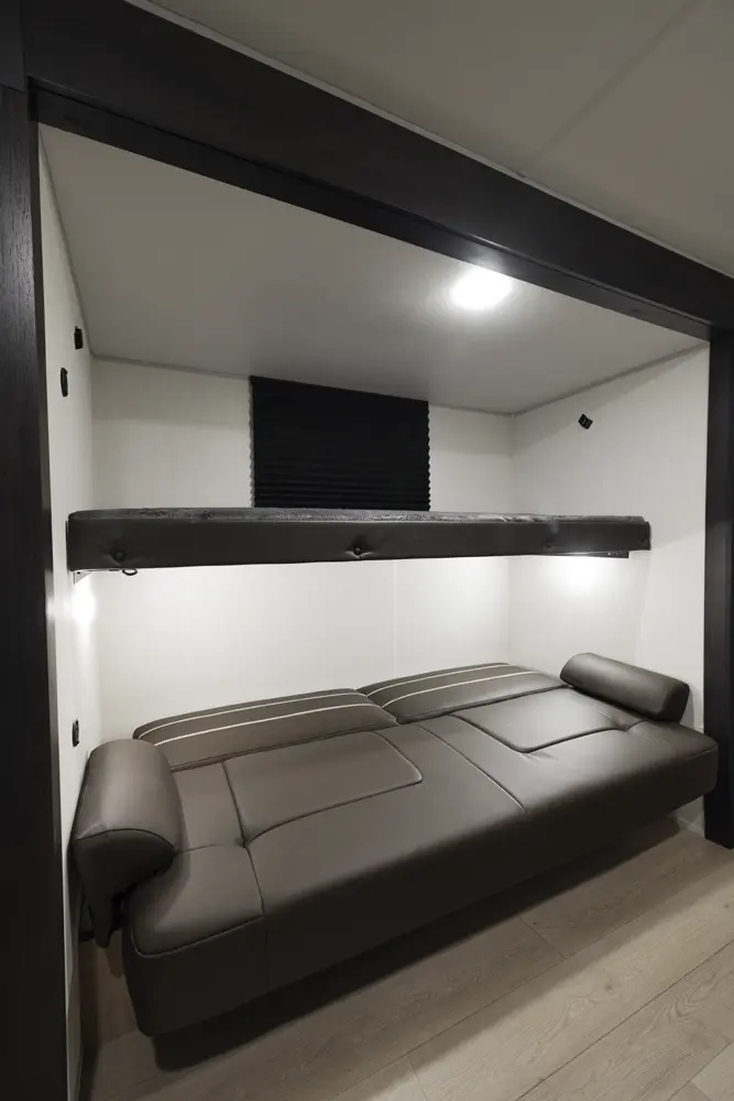 The 301BH is a great option for large families looking for an affordable option. This design is highlighted by a huge bunk room that has sleeping for four and plenty of storage to stash things away. Families will also appreciate the large kitchen that features a u-shape dinette and a sofa for maximum seating.