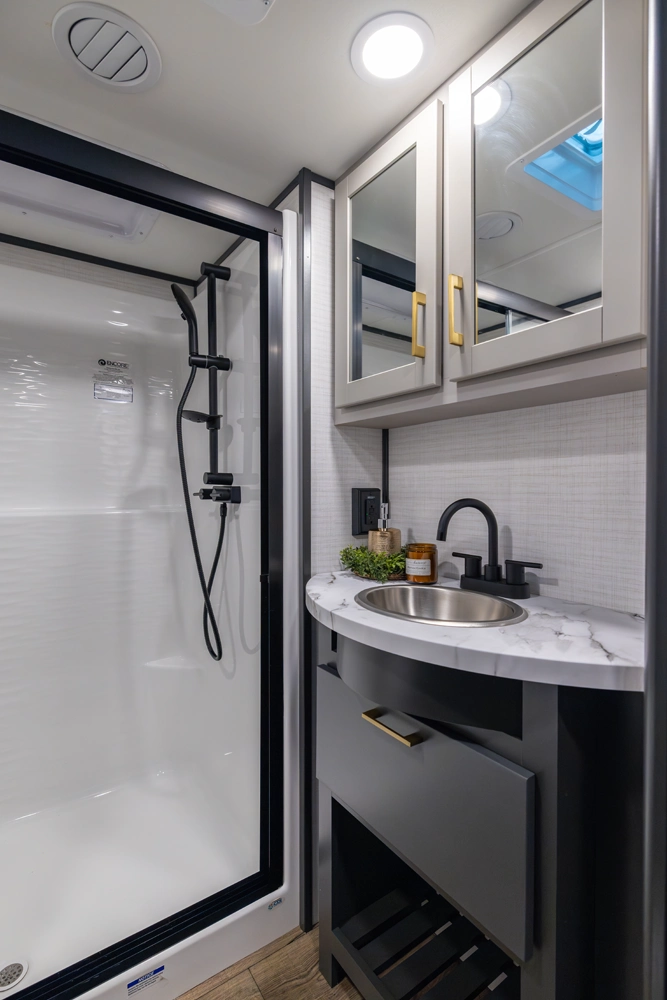 • Painted Badge Fiberglass Front Cap w/ Max Storage Closet