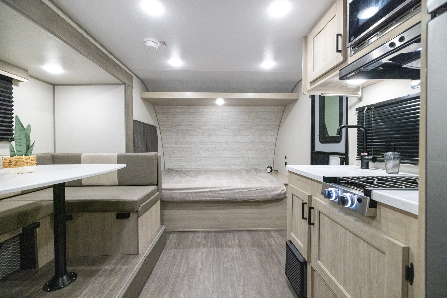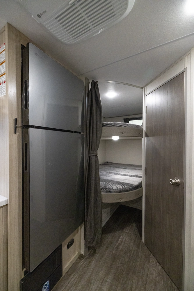 Extra-large living space with a rear bunkhouse and extended kitchen area. Lightweight for easy towing while offering a comfortable interior for families seeking adventure on the road.