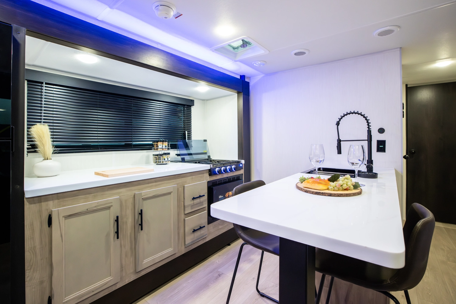The Black Label version of the Grey Wolf 27LH is an intelligently designed entry level travel trailer designed for modern camping. Notable Black Label upgrades include fiberglass gel coated side walls, frameless windows, thermos-foil arctic insulation and solid surface countertops.