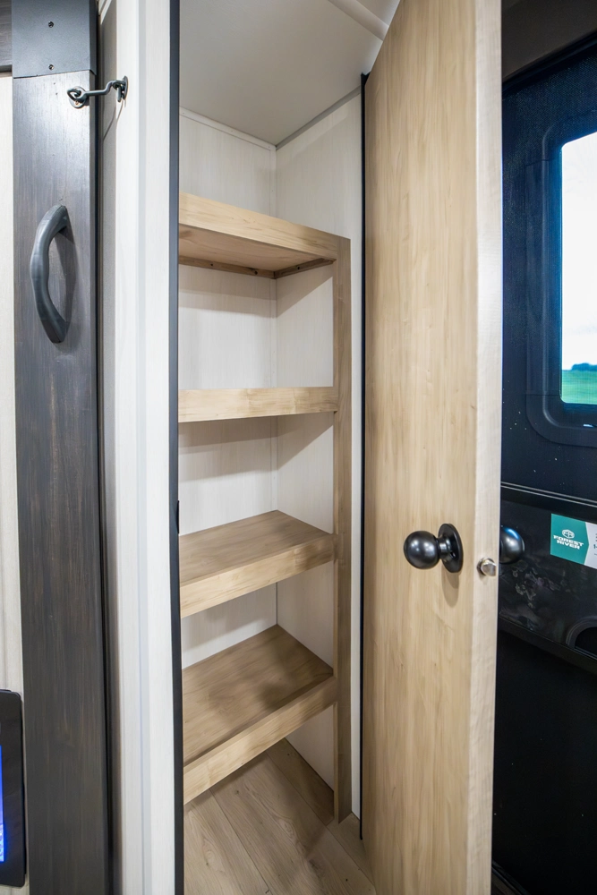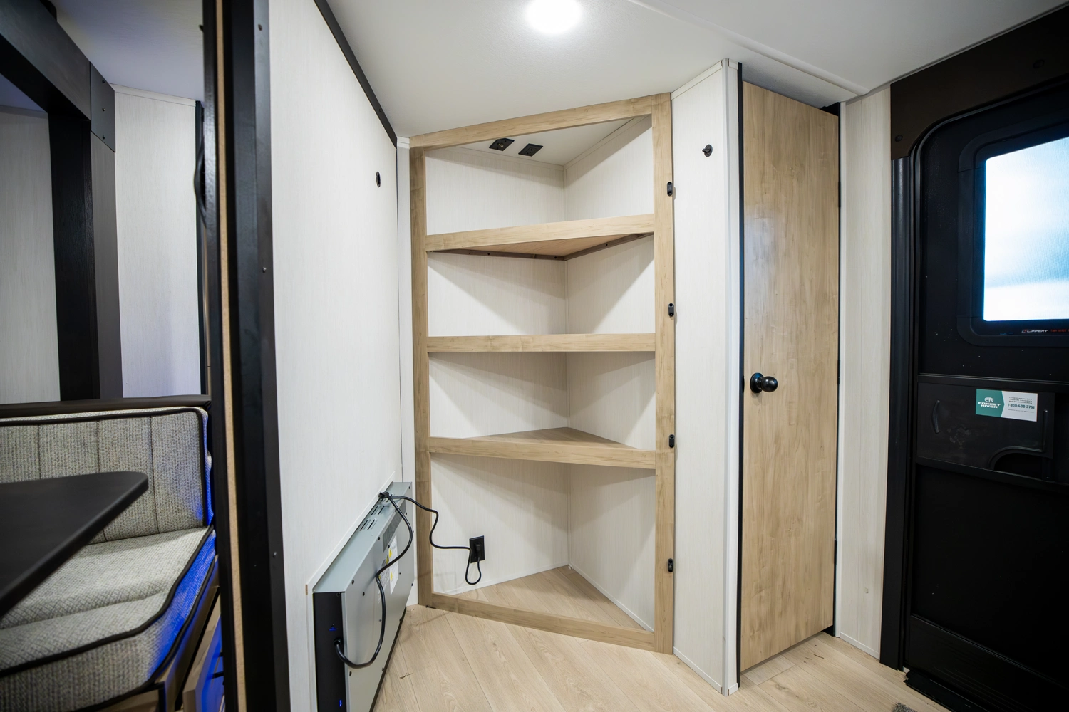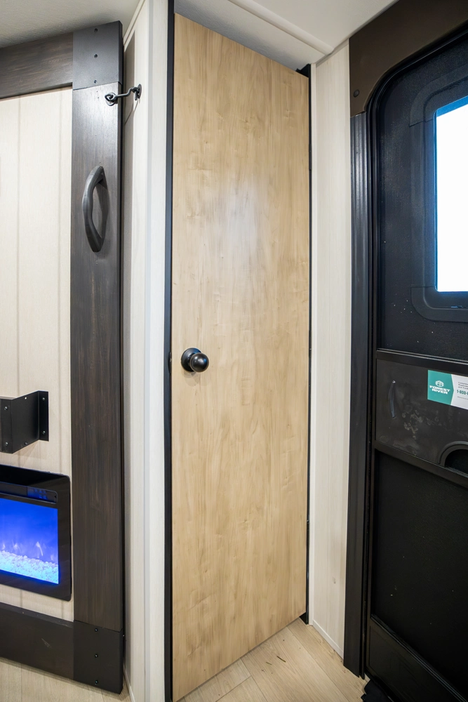 • Blackout Glass, Safety Slam, Friction Hinge Entry Door with Window and Shade Prep (N/A on LP models)