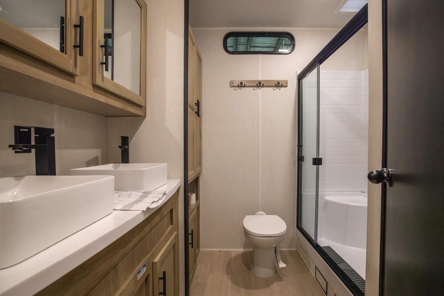 • Blackout Glass, Safety Slam, Friction Hinge Entry Door with Window and Shade Prep (N/A on LP models)