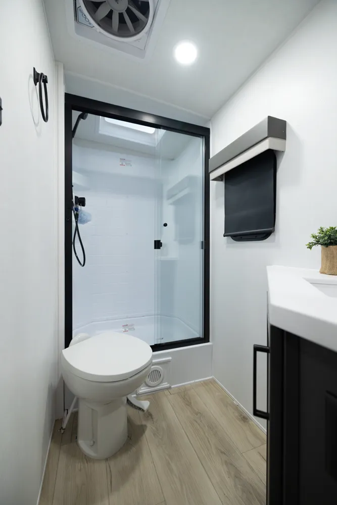 • Platinum Package: Auto Leveling, Frameless Windows, 1800W Inverter, MORryde Strut Assist Entry Step, Dual 30 LP Tanks