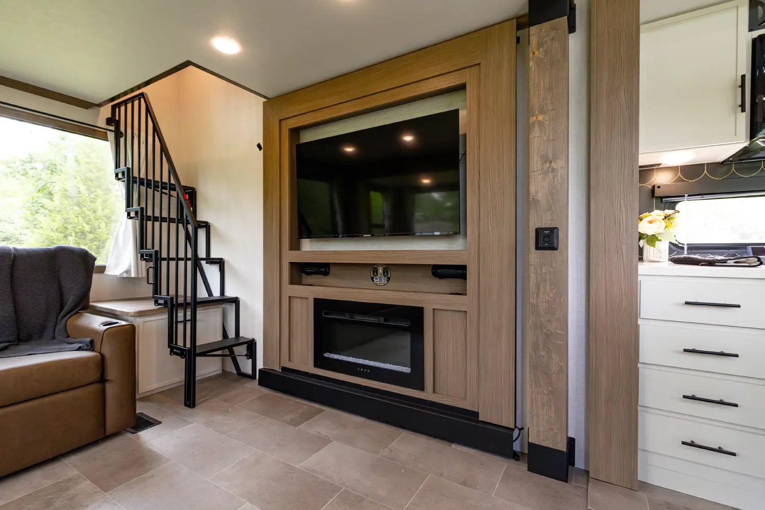 • 110 Outlet & 12V Charging Ports Beside Bed