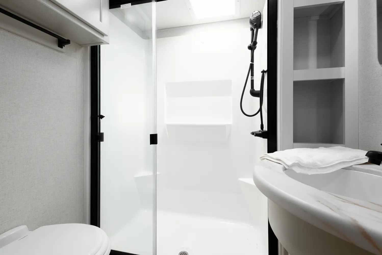 • Fiberglass one-piece shower