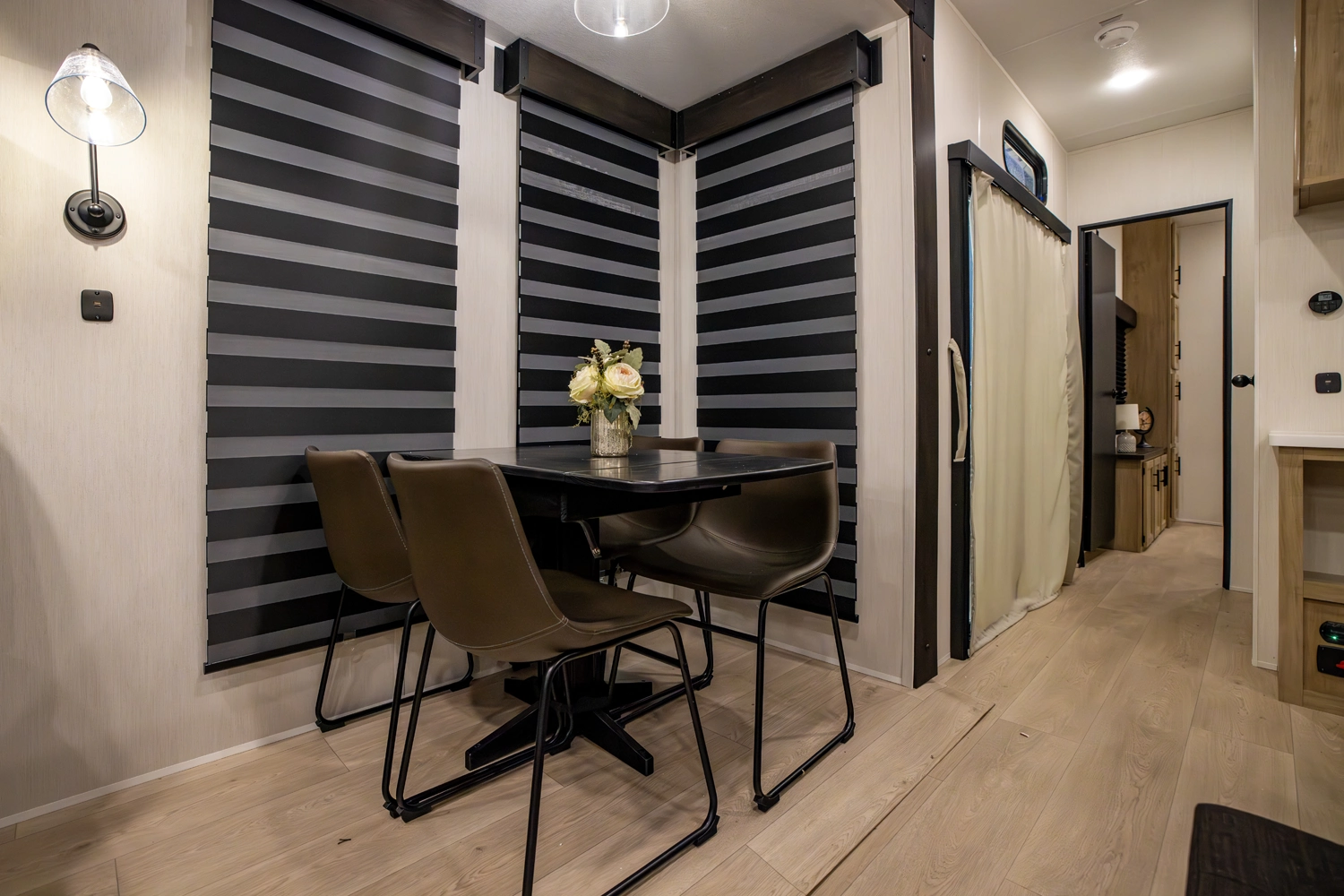 • Blackout Glass, Safety Slam, Friction Hinge Entry Door with Window and Shade Prep (N/A on LP models)