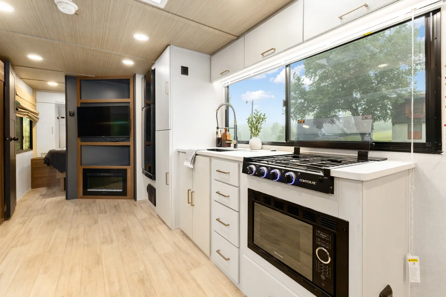 • True Flush Floor Slideouts with Fabric-Backed Shaw Linoleum