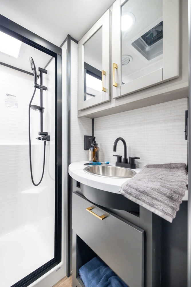 • Painted Badge Fiberglass Front Cap w/ Max Storage Closet